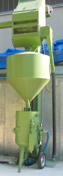 Um seleccionador pneumático de 3 selecções ligado ao filtro de pó, depura o abrasivo metálico e sintético de qualquer granulometria e de qualquer corpo estranho.