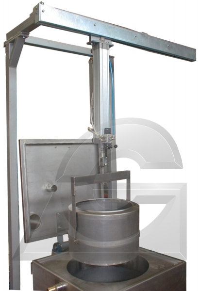 Características de funcionamento: Maquina realizada para a impregnação de peças metálicas introduzidas no volume do cesto. Após o fecho da tampa dá-se inicio ciclo, a bomba encherá a cuba cónica do cesto e, no tempo selecionado, iniciará a rodar em velocidade lenta.